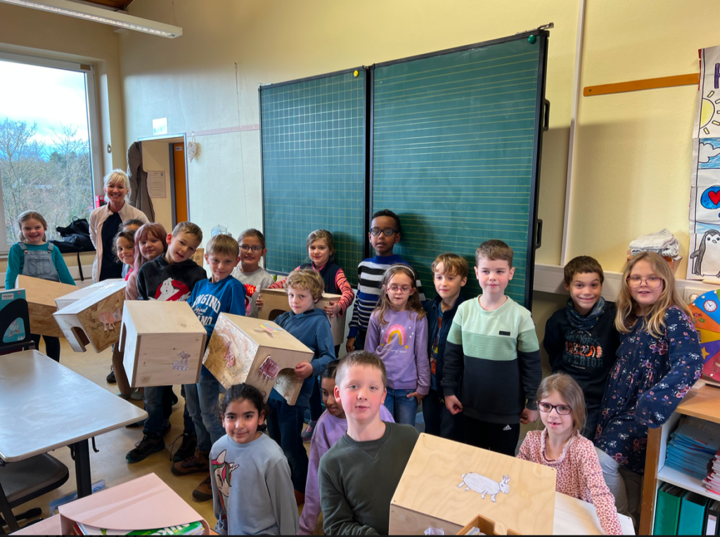 Anfang des Jahres besuchte unsere Kleintierpflegerin die Klasse 2d der Karl-von-Ibell-Schule in Diez. Die Kinder hatten in der Vorweihnachtszeit selbstgebaute Nagerhäuser für uns angefertigt und diese beim Besuch in der Schule übergeben. Nicht nur wir, sondern auch die Kinder waren von der Aktion begeistert und konnten beim Besuch noch einiges über die artgerechte Haltung und Ernährung von Kaninchen lernen. Leider werden viele Kaninchen noch immer grundlos in kleine Heimtierkäfige und Einzelhaltung gesteckt. Wir hoffen durch diese Aktion etwas Aufklärung beim Nachwuchs geleistet zu haben und möchten uns nochmals ganz herzlich bei der Lehrerin und den Kindern für die tollen Häuser bedanken!