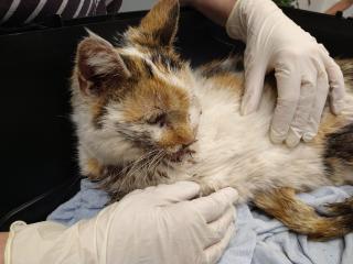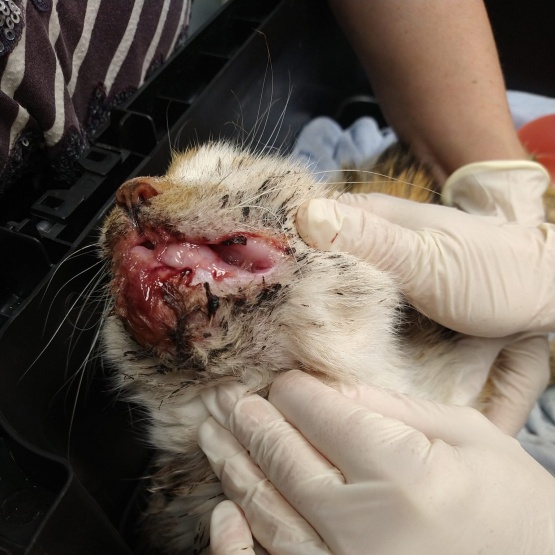 Heute Abend erhielten wir einen Anruf aus Wölferlingen auf unser Notfalltelefon, dass sich dort eine Katze in lebensbedrohlichem Zustand befindet. Schnell versuchten wir in unserem Team einen Fahrer zu finden, um das Tier zum Tierarzt bringen zu können. Leider befand sich unser eigentlicher Notdiensttierarzt im wohlverdienten Urlaub und wir riefen beim zuständigen Notarzt für die Region an. Hier wurde uns mitgeteilt „die Bude ist voll“ und wir wurden mit unserem Notfellchen nach Betzdorf verwiesen. Allerdings ist dort die Klinik nur bis 20 Uhr geöffnet und dies war zeitlich nicht mehr zu schaffen. Nach vielen frustrierenden Telefonaten fanden wir eine Tierärztin in Bad Marienberg, welche in 40 Minuten vor Ort sein konnte. Endlich konnte die arme Maus behandelt werden. Leider stellte sich heraus, dass sie ein sehr weit fortgeschrittenes Plattenepithelkarzinom hat, welches den gesamten Kiefer zersetzt hatte. Sie konnte weder fressen, noch sich sauber lecken. Ihre Krallen waren eingewachsen und ihr Körper ausgezehrt. Eine Behandlung war nicht mehr möglich und wir konnten das alte Kätzchen, welches wir so gerne retten wollten, nur noch von seinen Qualen erlösen. Es war ein sehr langer und emotionaler Abend, nach einer emotionalen und herausfordernden Woche. Wir hoffen die Zustände ändern sich bald wieder ein wenig….