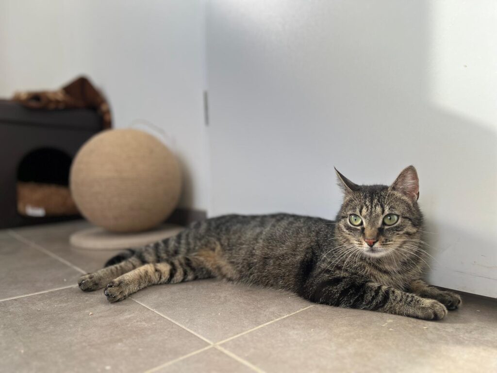 Ich bin eine junge Katze, die dem Menschen gegenüber lange sehr vorsichtig war. Viel Nähe und Aufmerksamkeit kannte ich einfach nicht, deshalb fiel mir Vertrauen am Anfang besonders schwer.
